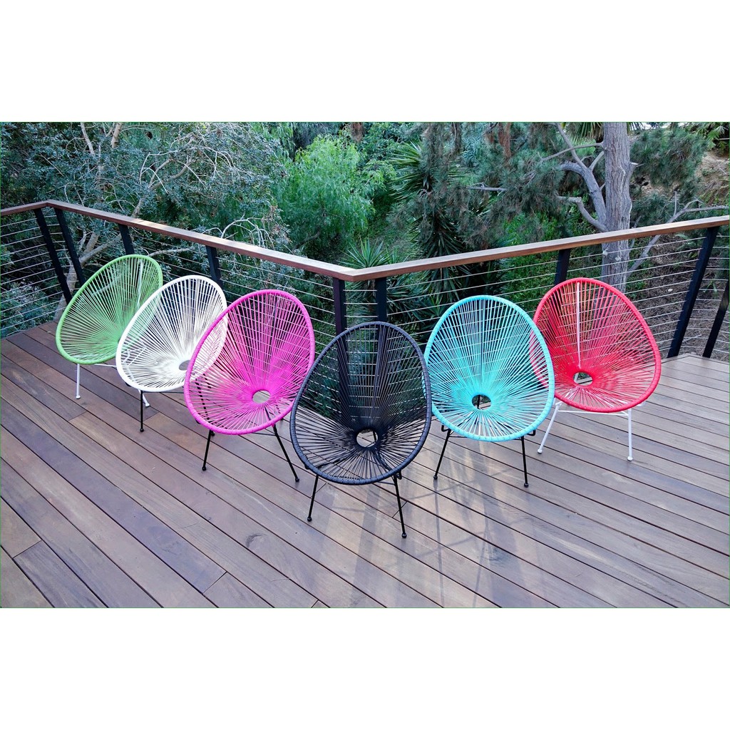 Ghế ACAPULCO - Phong cách Mexico giữa lòng nhiệt đới.Kiểu dáng hình tròn/ quả lê, khung thép sơn, dây Vinyl êm ái.
