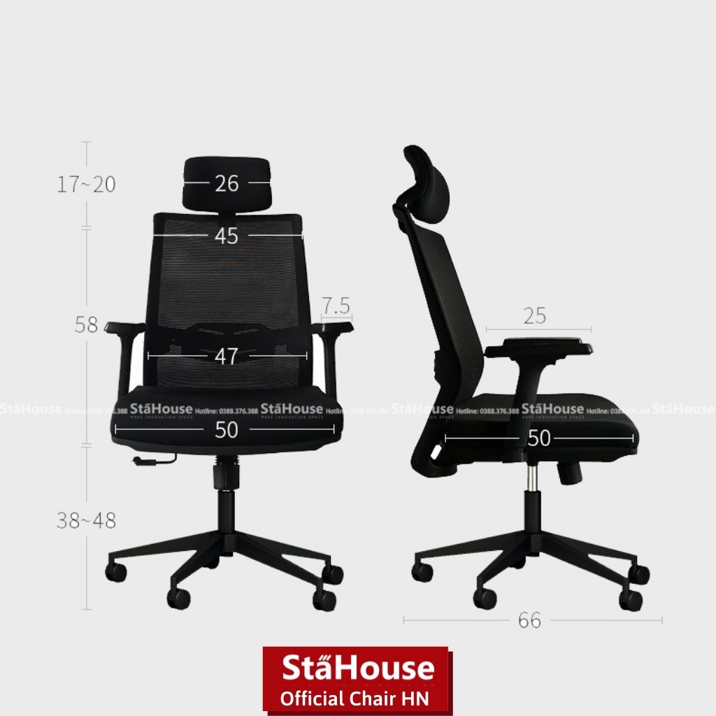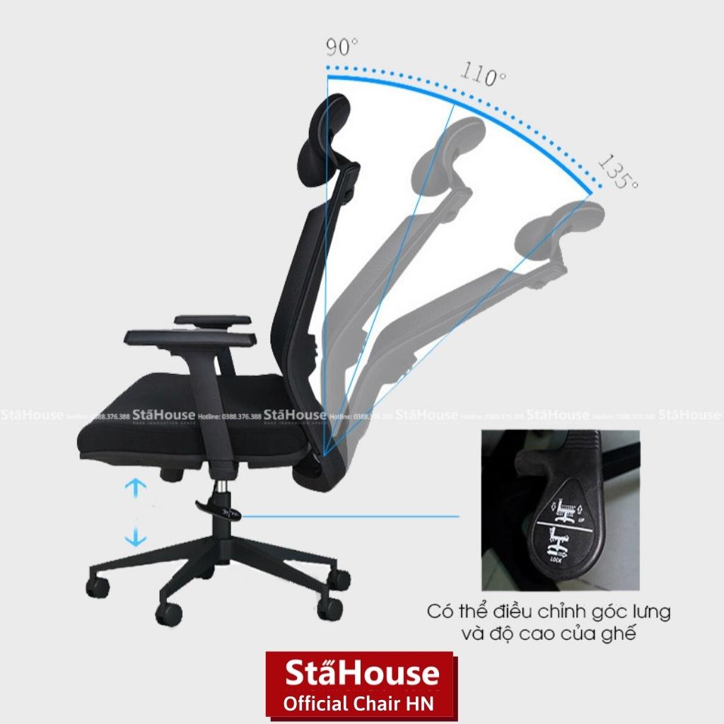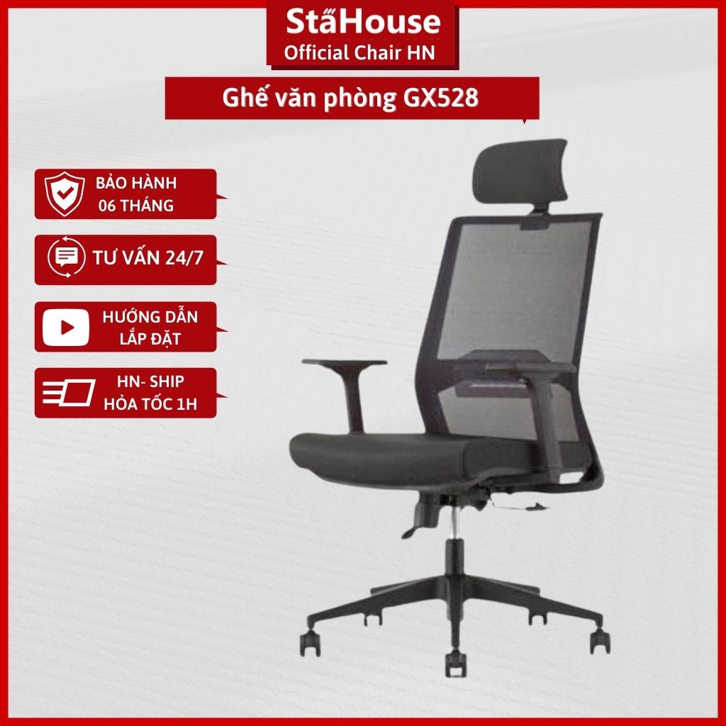 Ghế Công Thái Học chân xoay lưng lưới tựa đầu GX528, Ghế Văn Phòng Làm Việc Stahouse Official Chair HN