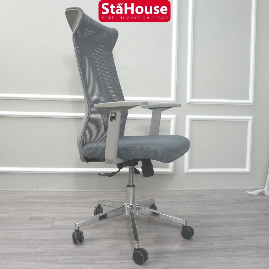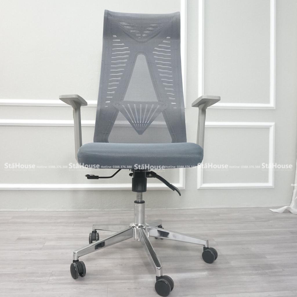 - Khung chân ghế thiết kế hình ngôi sao 5 cánh chịu lực cực tốt, bánh xe lăn giúp ghế di chuyển nhẹ nhàng