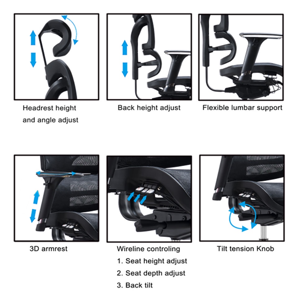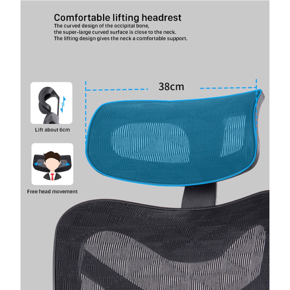 +Tựa đầu điều chỉnh độ cao, xoay góc phù hợp với người ngồi.