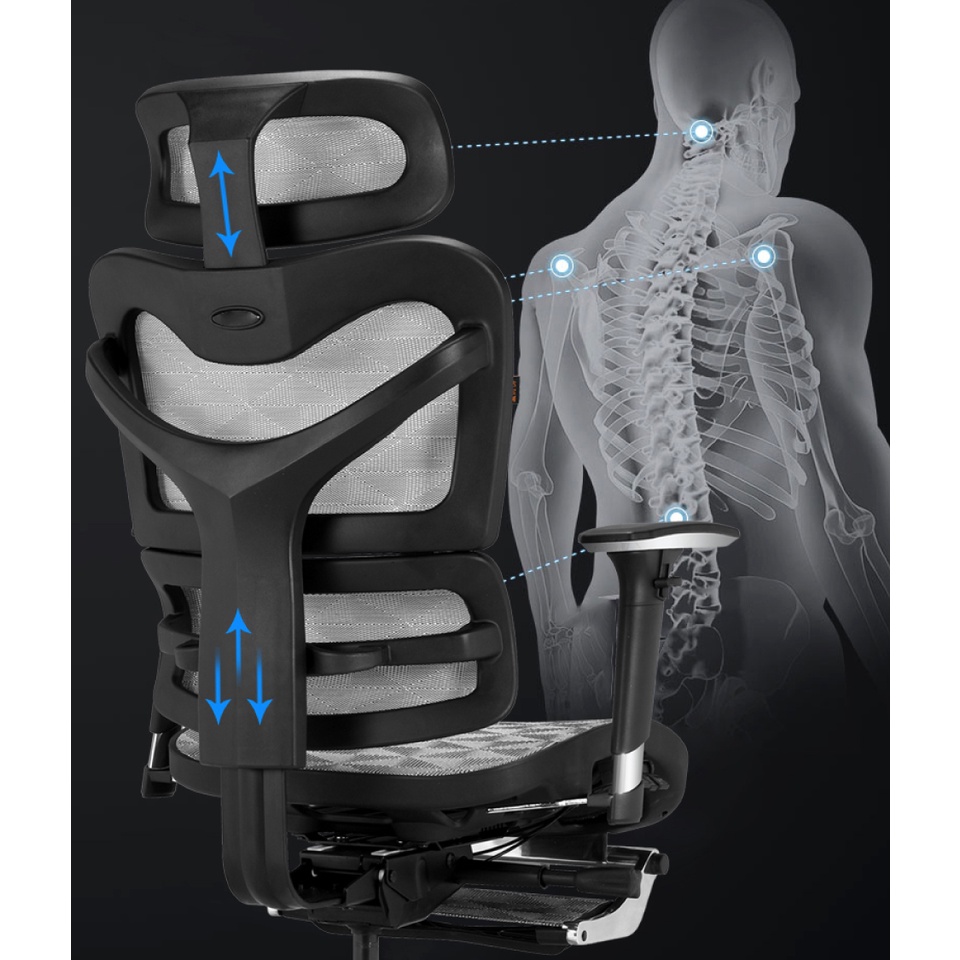 +Lưng ghế dáng cong, điều chỉnh độ cao thấp, ôm sát và nâng đỡ vùng cột sống người ngồi.