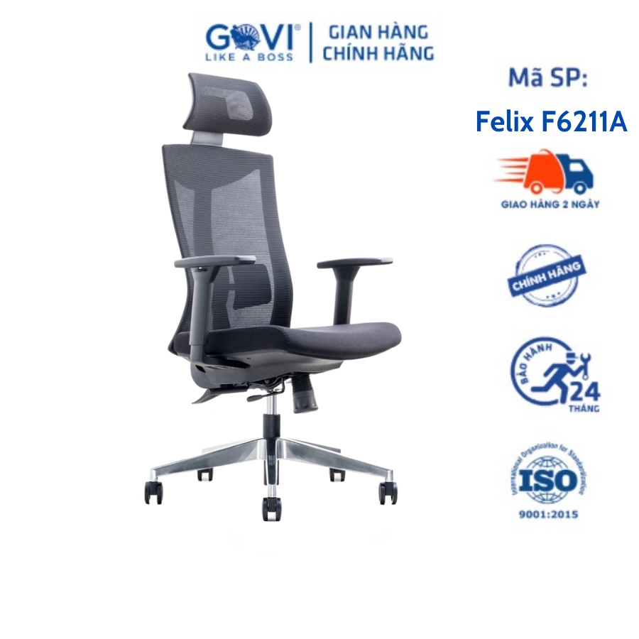 Ghế công thái học Ergonomic GOVI Felix F6211A - Tựa đầu, tựa tay điều chỉnh, mâm ghế ngả và khóa 3 vị trí