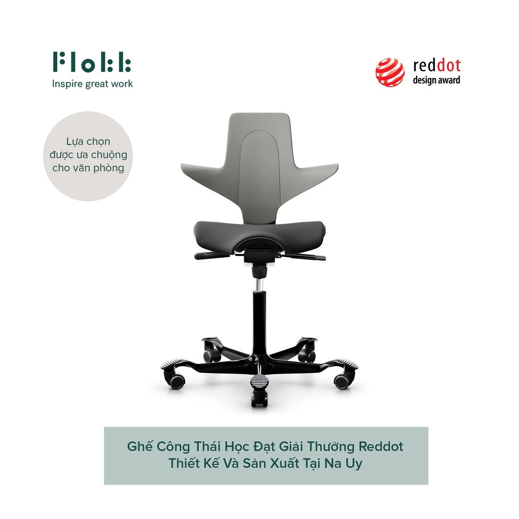 Giới thiệu [Bảo hành 10 năm] Ghế công thái học Flokk - HAG Capisco Puls 8020 - Đệm dày siêu êm - Màu xám đậm
