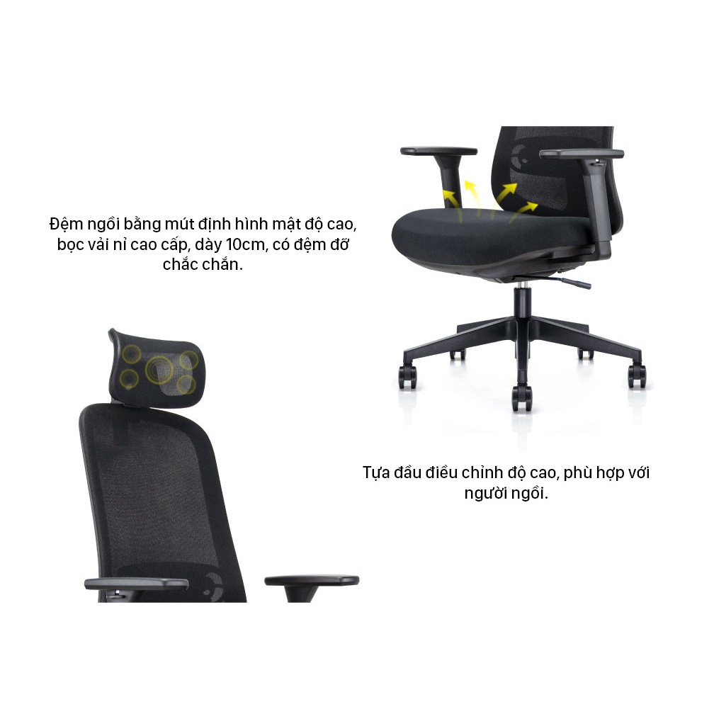 Tựa đầu điều chỉnh độ cao, phù hợp với người ngồi.