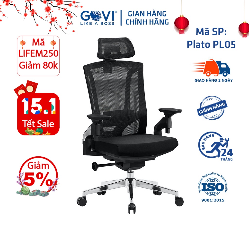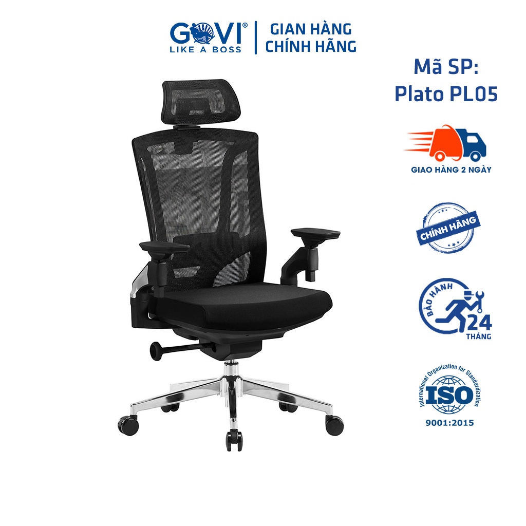 Ghế công thái học GOVI Ergonomic Plato PL05 - Tựa đầu điều chỉnh cao thấp, tựa tay 4D nâng hạ, cơ chế ngả lưng 135 độ
