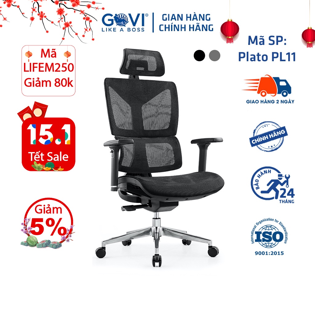 Ghế công thái học Ergonomic GOVI Plato PL11 - Tựa đầu điều chỉnh độ cao, tựa tay 3D nâng hạ, mâm ghế ngả 90-135 độ