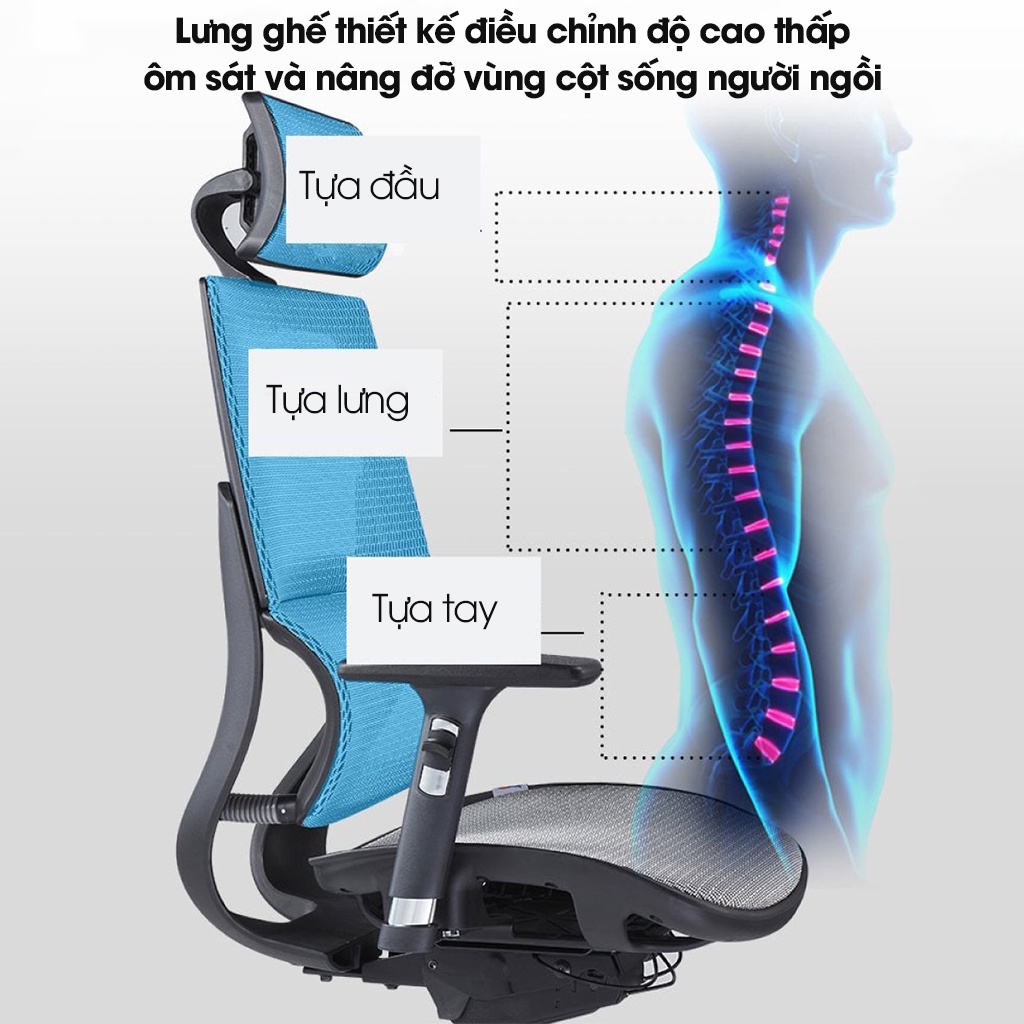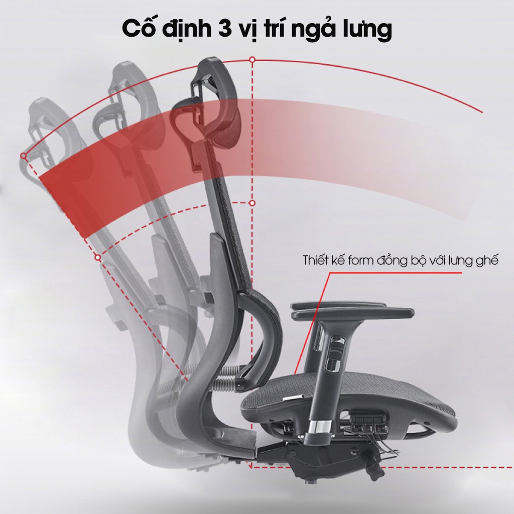 Ghế công thái học Ergonomic Solo S426A-Thiết kế tựa đầu điều chỉnh độ cao, tựa tay 3D nâng hạ, ngả lưng 90-135 độ đ