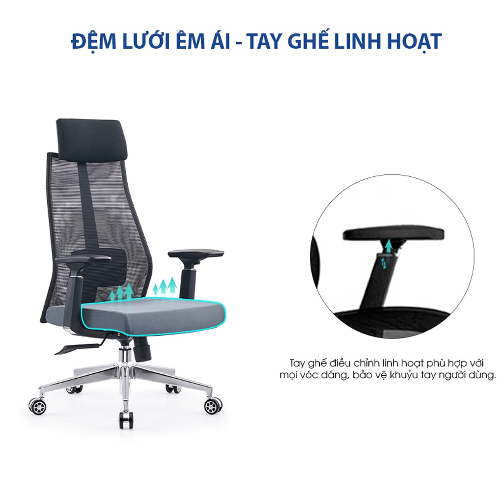 Ghế công thái học GOVI Ergonomic Plato PL15 -Tựa đầu cố định, tựa tay nâng hạ, mâm ghế cố định
