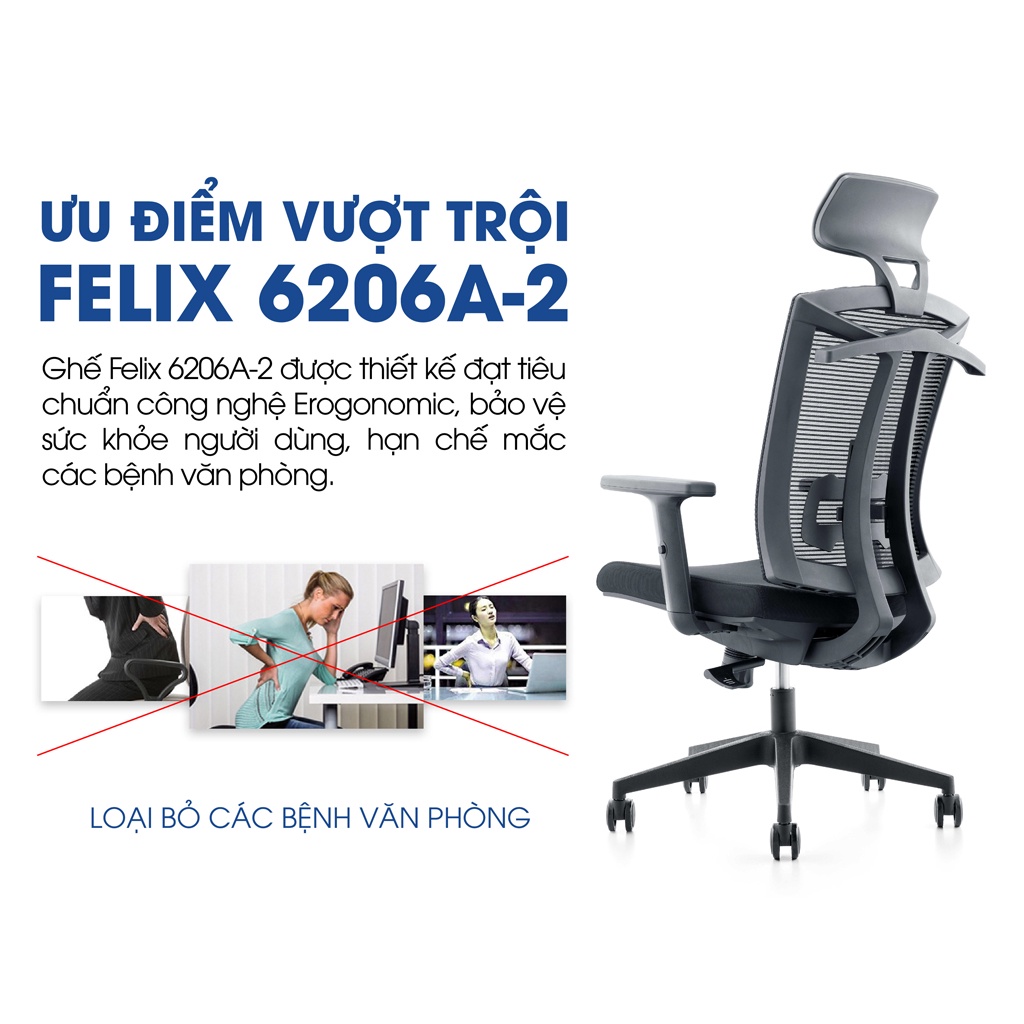 Nhà cửa & Đời sống > Nội thất > Ghế, ghế dài, ghế đẩu || Ghế công thái học GOVI Ergonomic Felix F6206A-2 Thiết kế bảo vệ sức khỏeCòn hàng