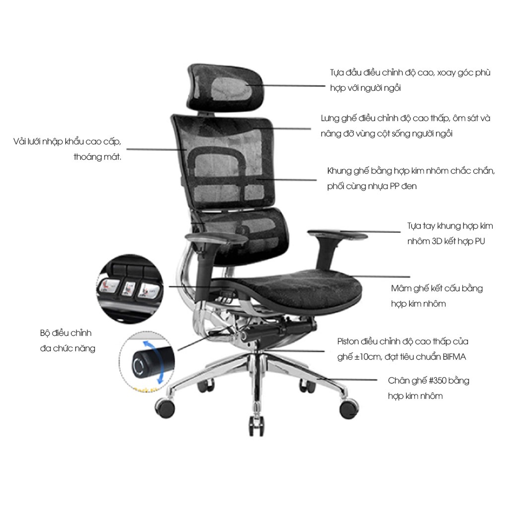 Giới thiệu Ghế công thái học GOVI Ergonomic Solo S801 - Tựa đầu tựa tay điều chỉnh, chân hợp kim, ngả lưng khóa đồng bộ 90-135 độ