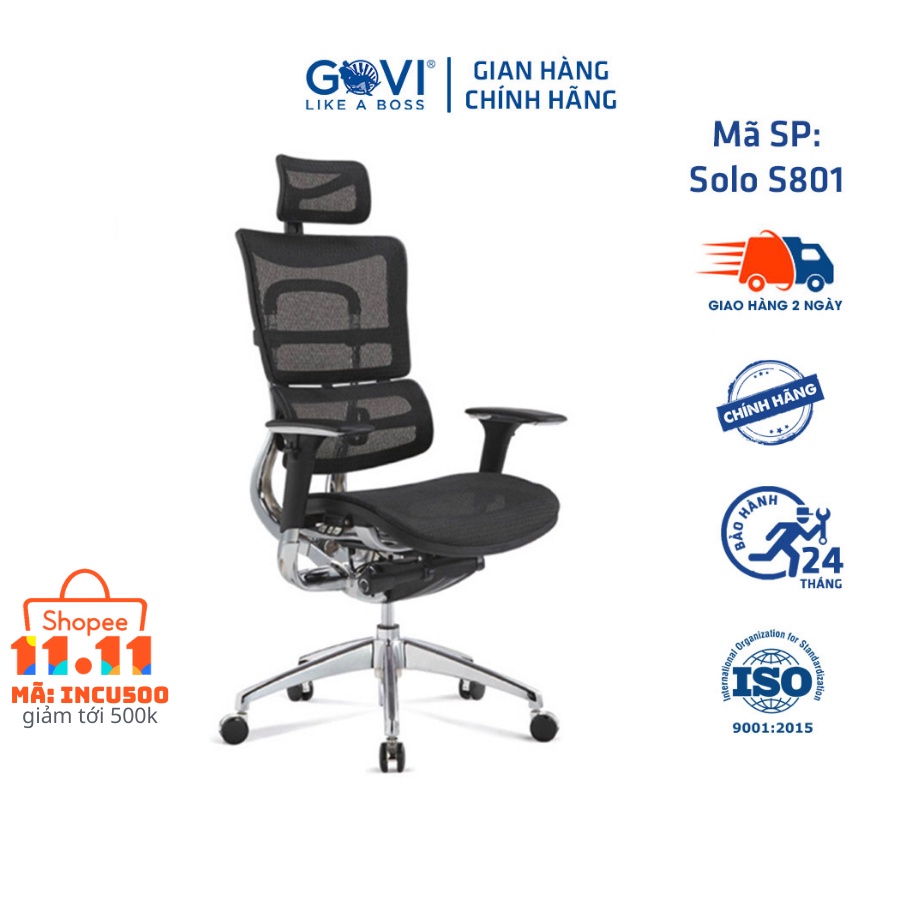 Nhà cửa & Đời sống > Nội thất > Ghế, ghế dài, ghế đẩu || Ghế công thái học GOVI Ergonomic Solo S801 Thiết kế bảo vệ sức khỏeCòn hàng
