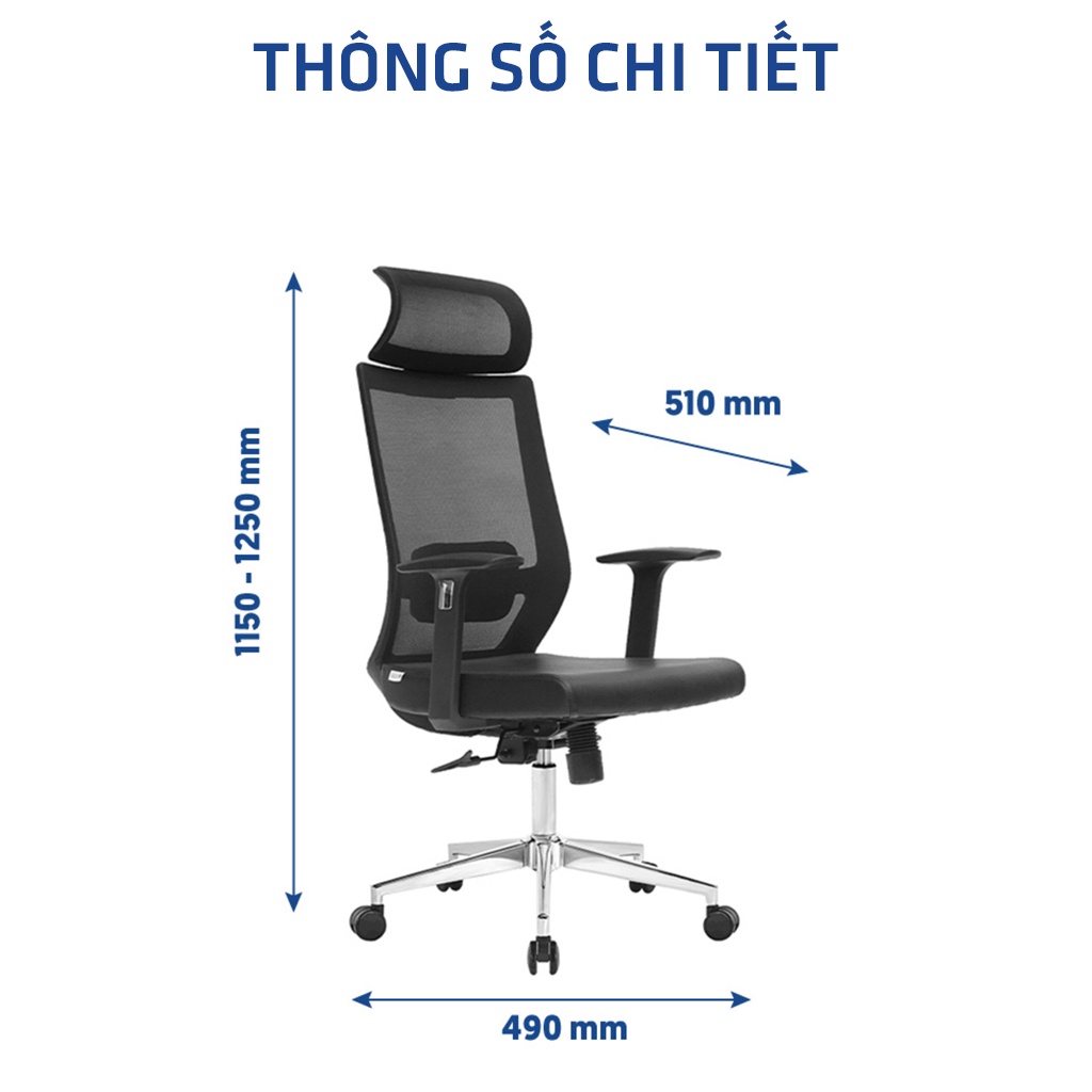 + Piston điều chỉnh độ cao thấp của ghế, đạt tiêu chuẩn BIFMA của Mỹ.