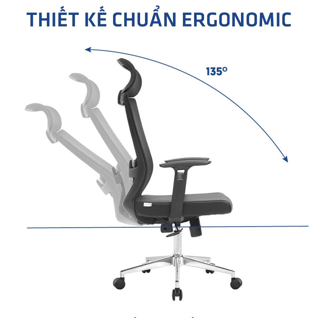 + Mâm ghế có cơ chế ngả lưng 90-135 độ, khóa cố định 3 vị trí