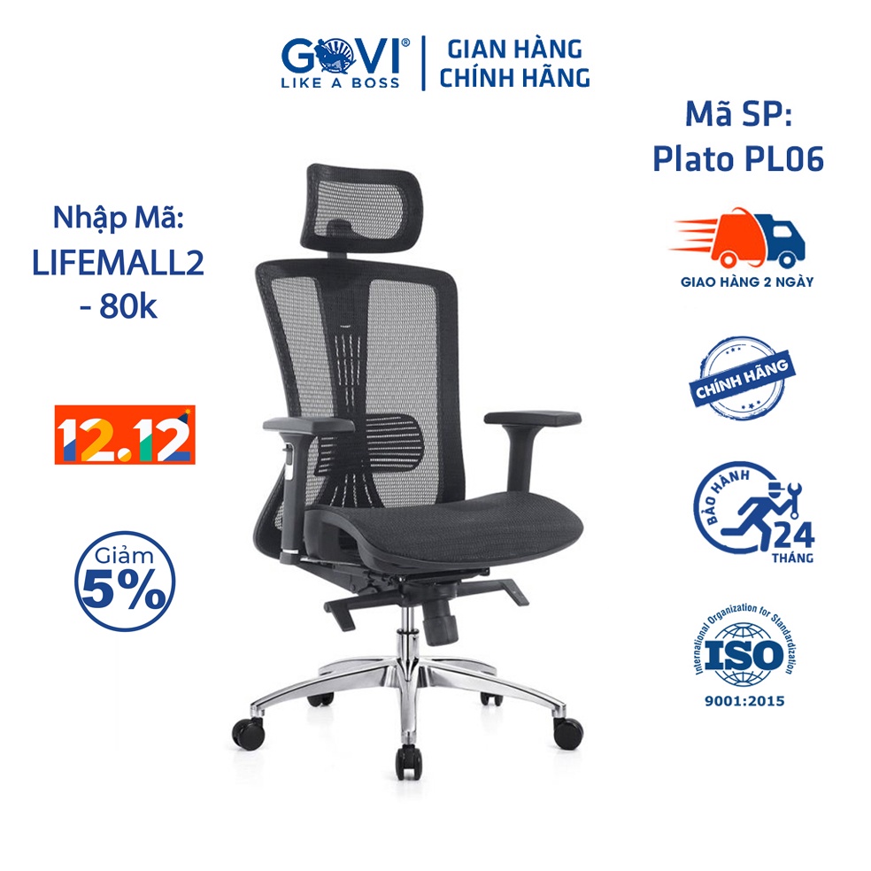 Nhà cửa & Đời sống > Nội thất > Ghế, ghế dài, ghế đẩu || Ghế công thái học GOVI Ergonomic Plato PL06 Thiết kế bảo vệ sức khỏeCòn hàng
