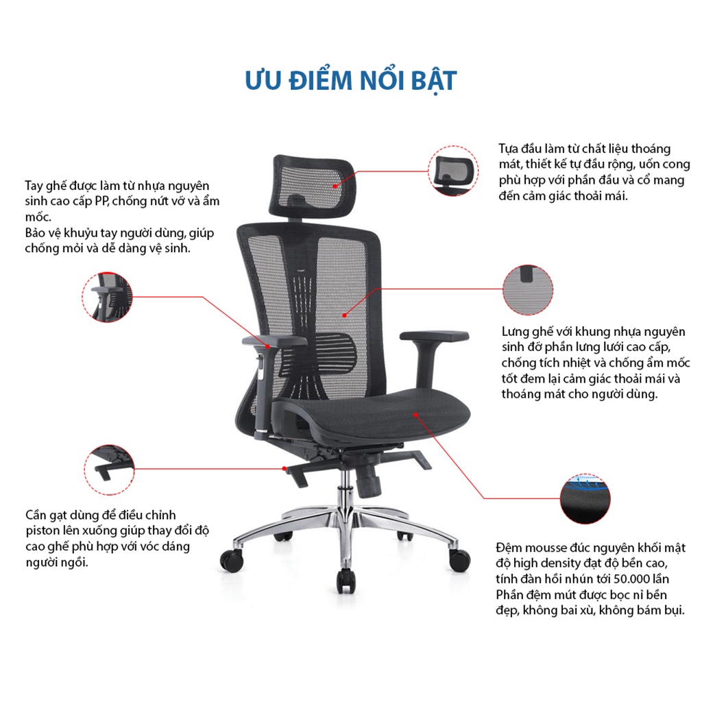- Ghế công thái học GOVI có Ưu điểm vượt trội: