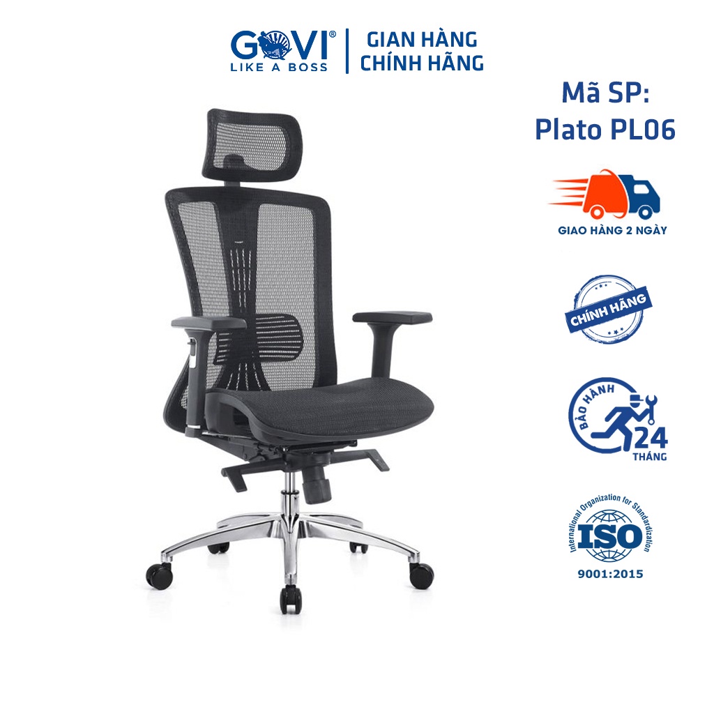 Ghế công thái học GOVI Ergonomic Plato PL06 - Tựa đầu tựa tay điều chỉnh, Mâm ghế ngả lưng 90-135 độ, khóa cố định