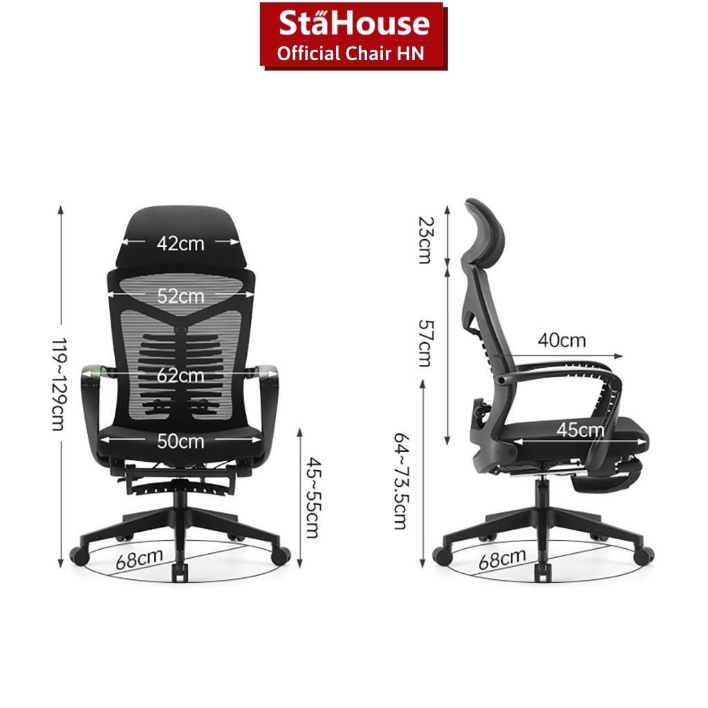 Ghế Công Thái Học Khung Chắc Chắn, Lưng Tùy Chỉnh Vừa Với Cơ Thể, Có Gác Chân Thư Giãn - SE703-Kích thước ghế văn phòng cao cấp SE703 : 119~129cm