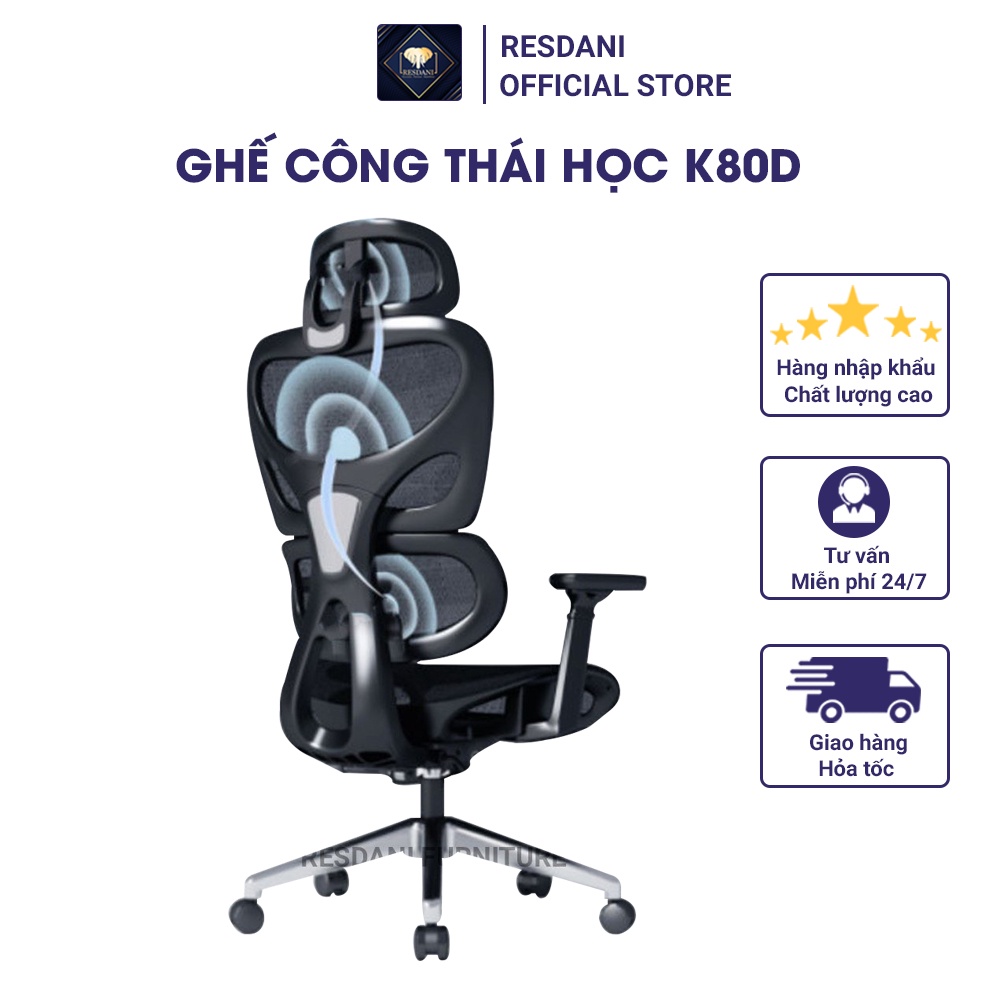 Ghế Công Thái Học Resdani Thiết Kế Bảo Vệ Cột Sống Cao Cấp K80D
