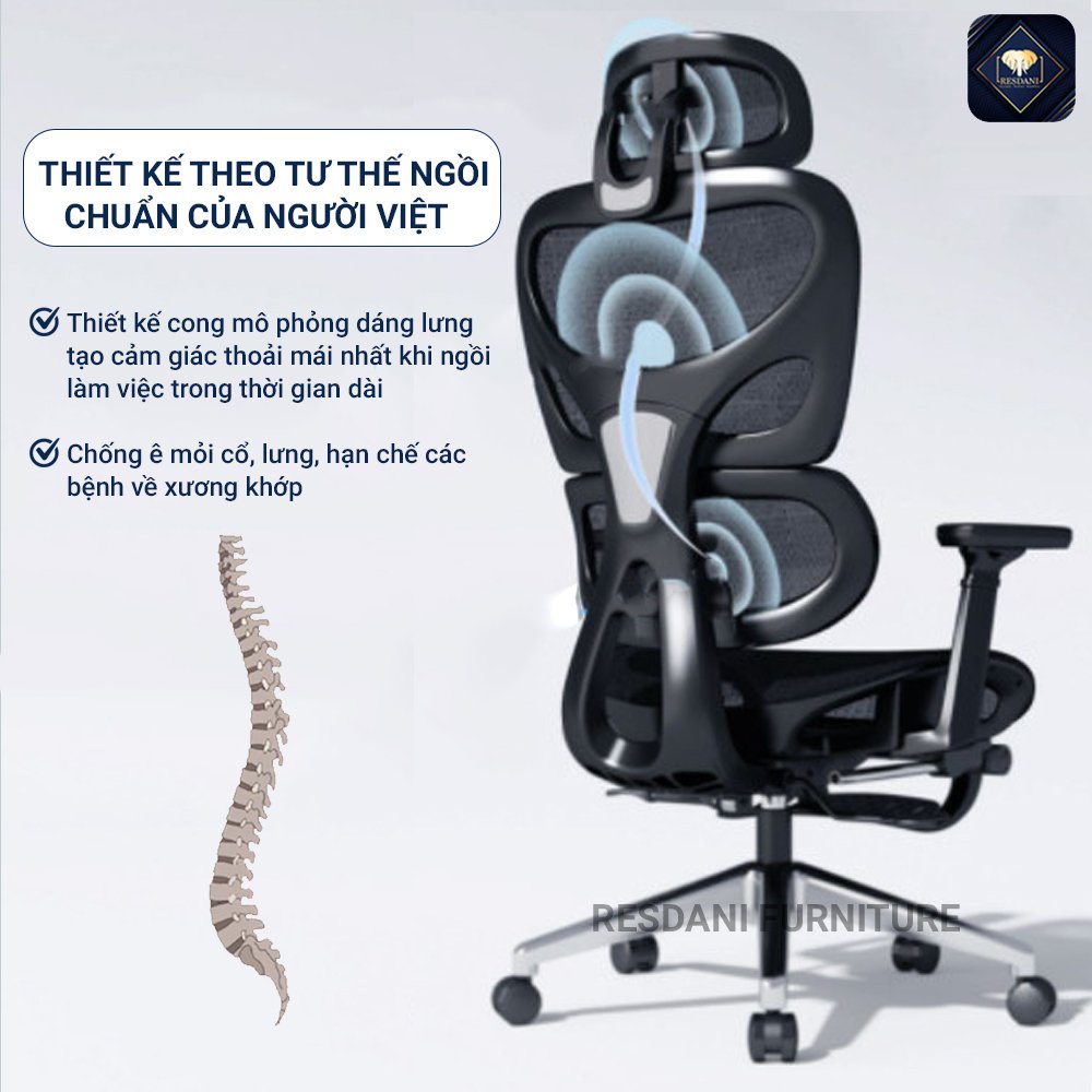 Giới thiệu Ghế Công Thái Học Resdani Thiết Kế Bảo Vệ Cột Sống Cao Cấp K80D