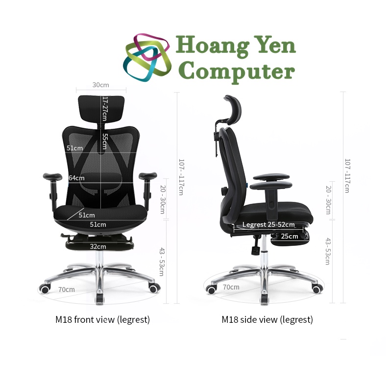 Ghế Công Thái học Sihoo M18 -Thiết Kế Ergonomic Bảo Vệ Cột Sống - BH 36 Tháng Chính Hãng - Hoàng Yến ComputerBảo hành 36 tháng chính hãng bằng mã đơn hàng.