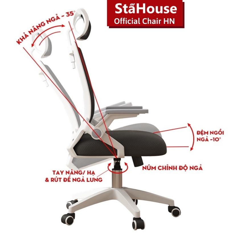 Nhà cửa & Đời sống > Nội thất > Ghế, ghế dài, ghế đẩu || Ghế Công Thái Học Văn Phòng Ngả Lưng Thư Giãn Có Tựa Đầu, Làm Việc Thoải Mái tại Nhà SE605 Stahouse Official Chair HNCòn hàng