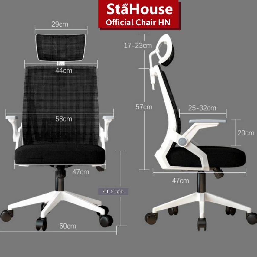 Ghế công thái học văn phòng ngả lưng thư giãn có tựa đầu, làm việc tại nhà SE605 STAHOUSE- Kích thước tựa lưng ghế SE605: 58x57cm