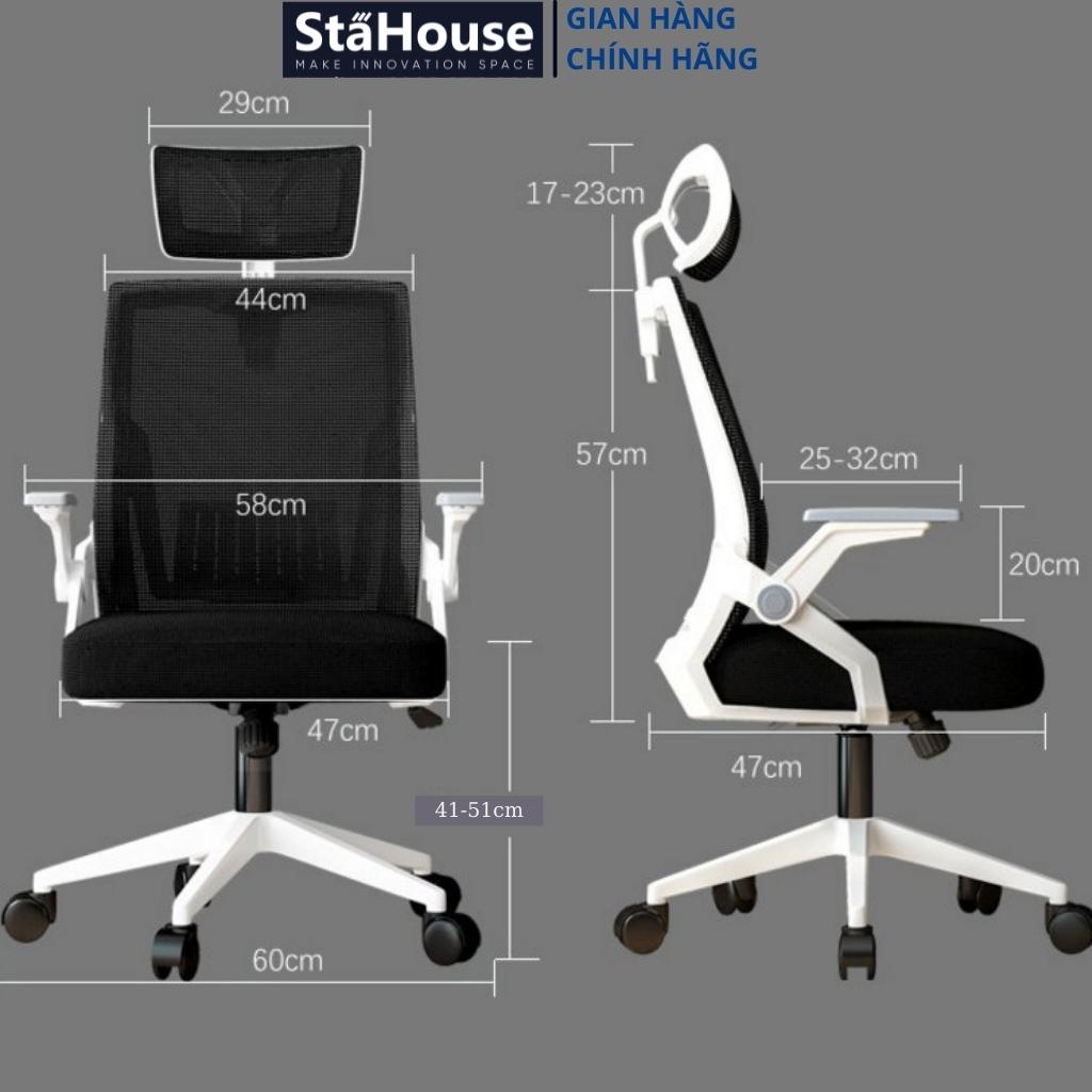 Ghế công thái học văn phòng ngả lưng thư giãn có tựa đầu, làm việc tại nhà SE605 STAHOUSE- Kích thước tựa lưng ghế SE605: 58x57cm