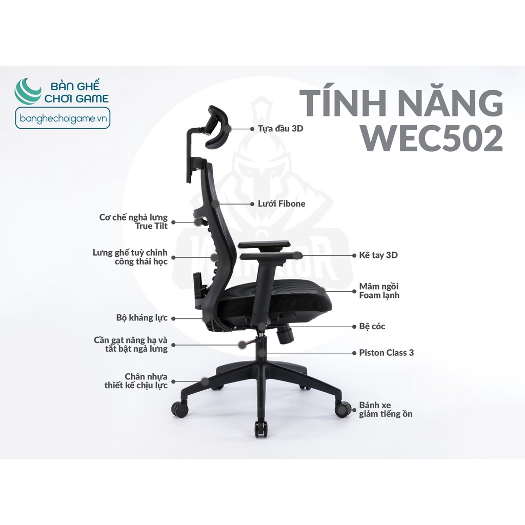 Giới thiệu Ghế công thái học Warrior WEC502 (Đen/ Xám) - Hàng chính hãng