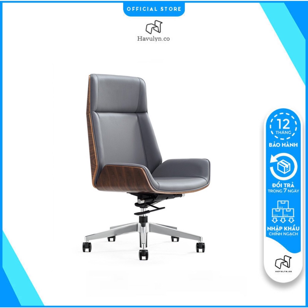 Ghế Da Văn Phòng, Ghế Giám Đốc Xoay 360 Độ Khung Gỗ Bọc Da PU Chân Sắt Bằng Thép Không Gỉ