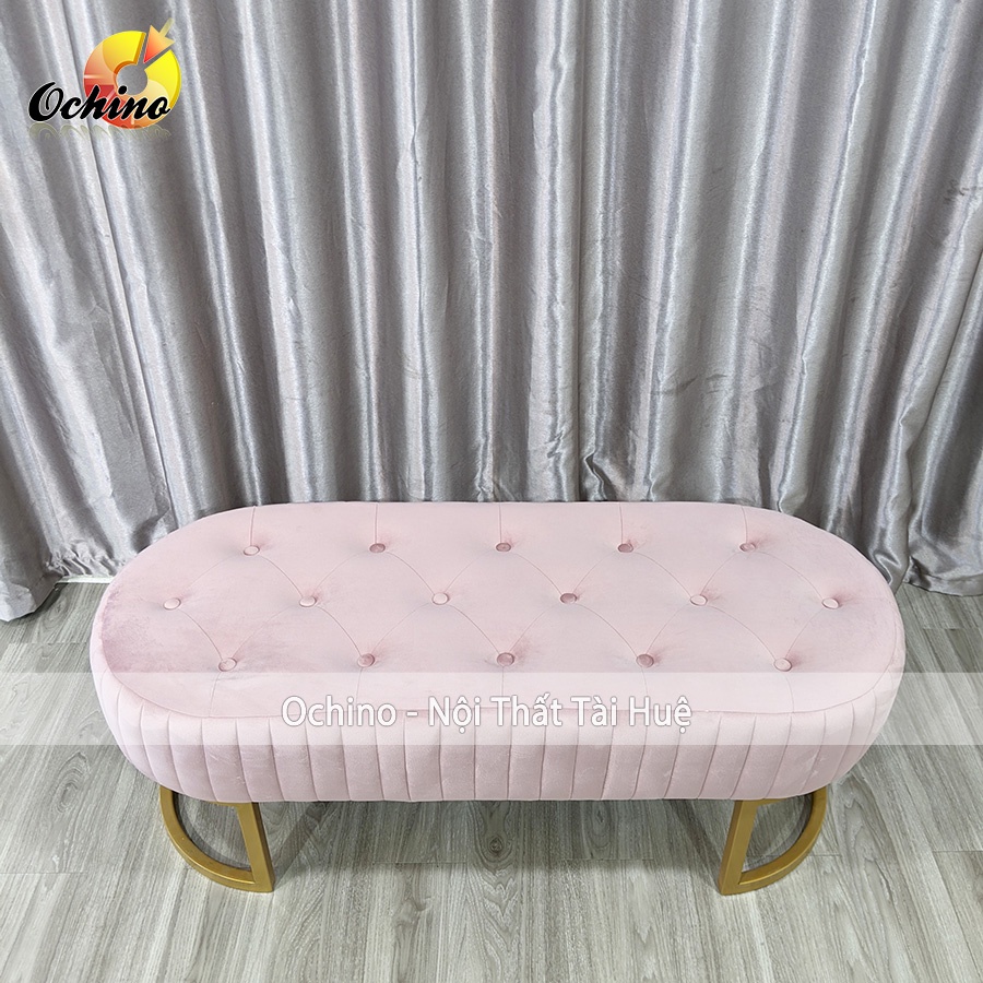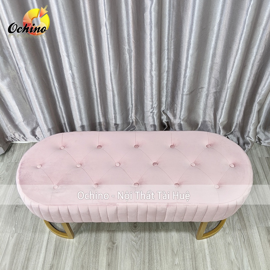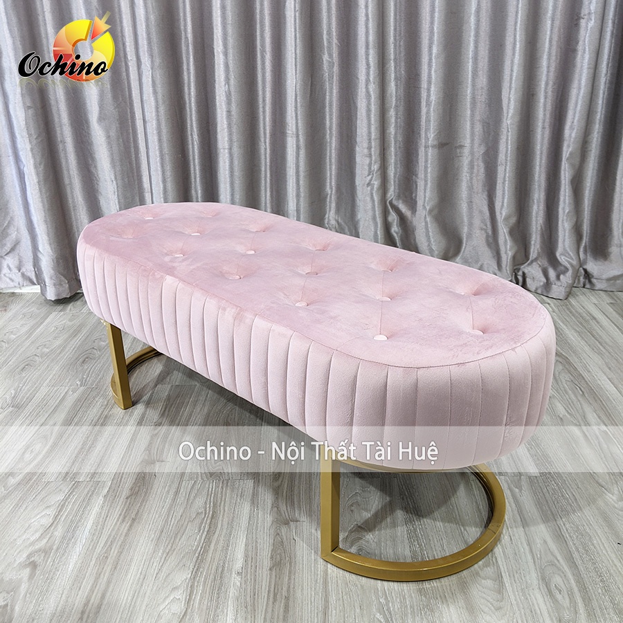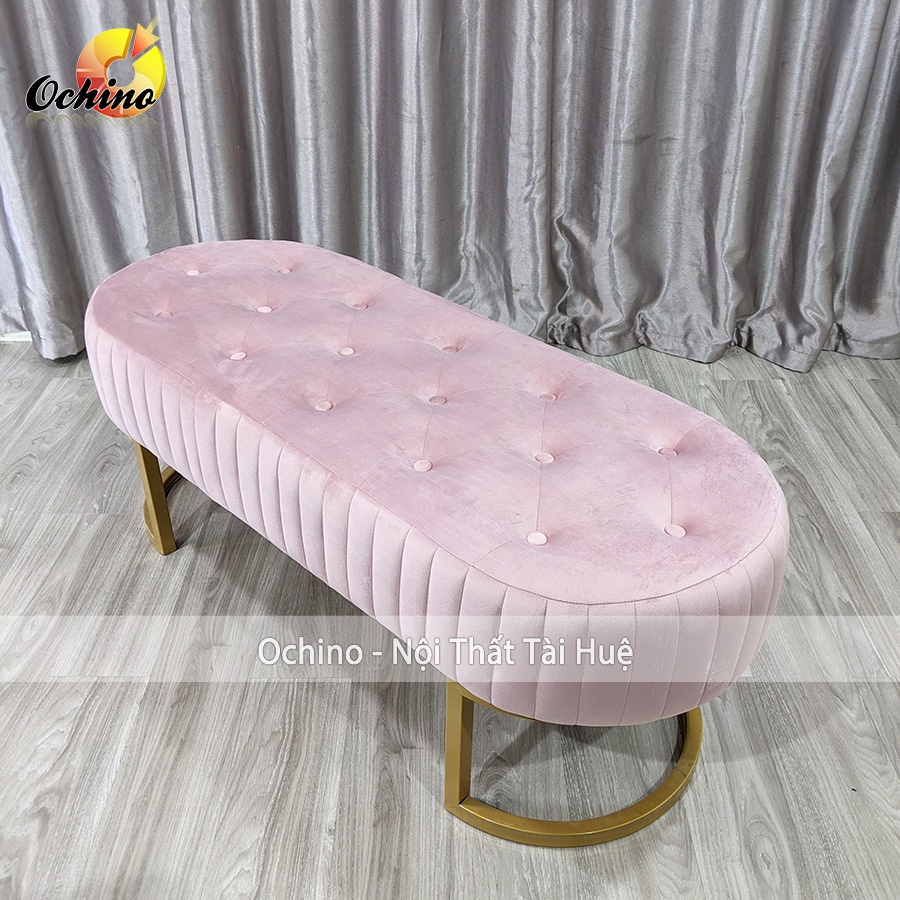 Giới thiệu Ghế Dài Sofa Dài 1m2, Ghế băng Dài Cho Shop Hình Bầu Dục Có Nhún Mặt Chân Vàng Cách Điệu ( Sẵn Hàng)