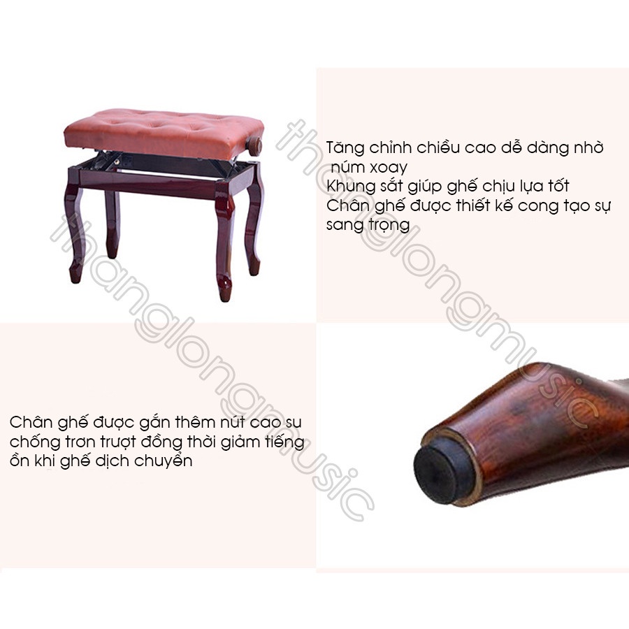 Đặc điểm nổi bật của ghế piano cơ Ghế Đàn Piano Cơ Chân Cong Màu Nâu Sang Trọng:
