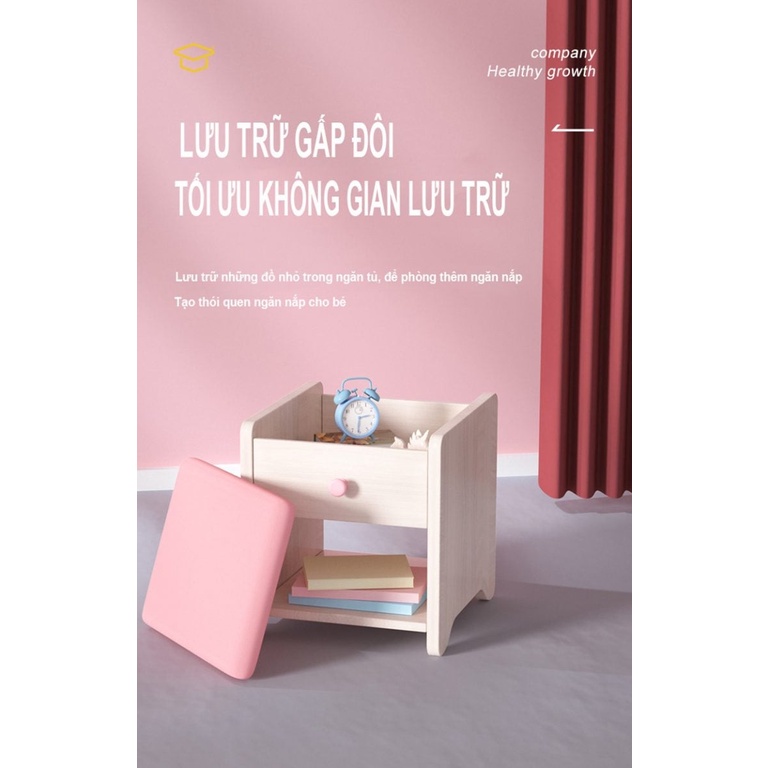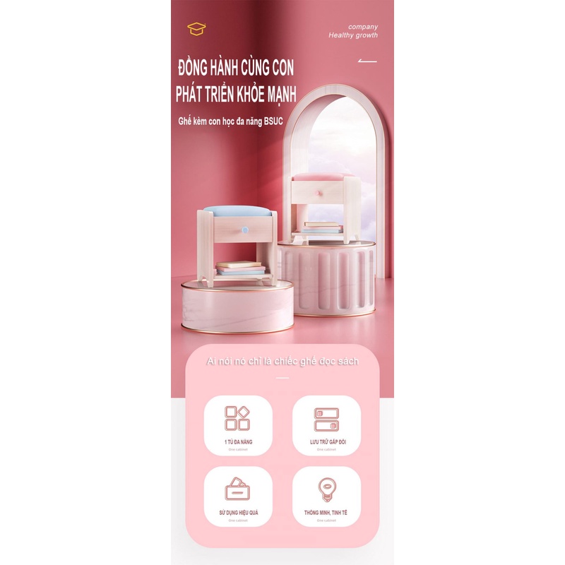Ghế dạy kèm - Giá kệ sách - Tủ đầu giường đa năng 3 in 1 CAYABE;g Giúp tăng thêm khả năng lưu trữ sách vở cho bộ bàn học chống gù, mà lại còn đa năng làm ghế ngồi cho ba mẹ/ gia sư dạy con học nữa