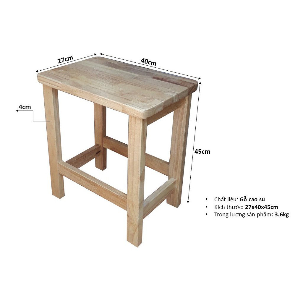 Giới thiệu [Mã LIFEBKA5 giảm 10% tối đa 1 Triệu đơn 500k] GHẾ ĐÔN CAO 45CM MẶT CHỮ NHẬT GỖ CAO SU 47wOOD