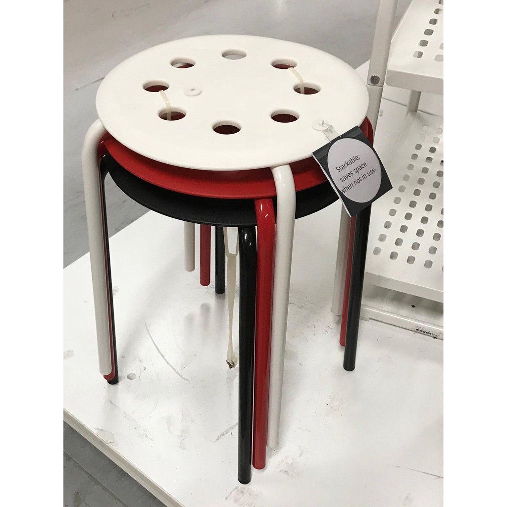 Ghế đôn có 3 màu đen, đỏ, trắng, có thể xếp chồng lên nhau, cực kì tiện dụng.Đường kính ghế: 32 cm