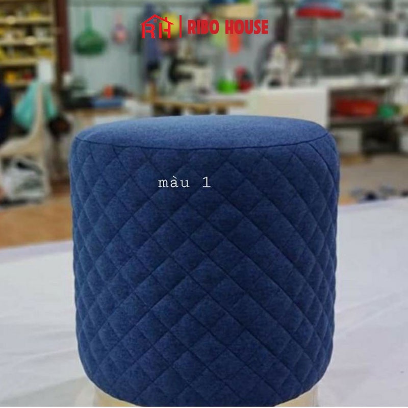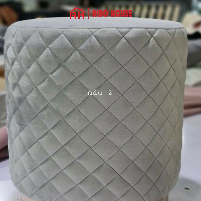 Ghế đôn RIBO HOUSE để bàn trang điểm, ghế vải nhung nỉ hoạ tiết kẻ caro trang trí phòng ngủ, phòng khách RIBO209