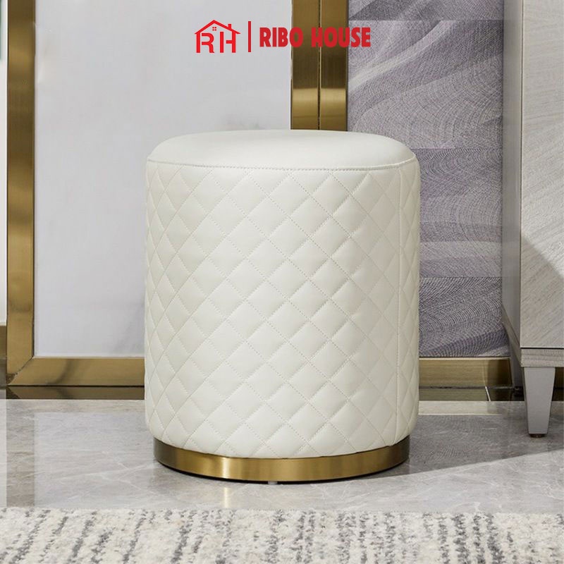 Giới thiệu Ghế đôn RIBO HOUSE để bàn trang điểm, ghế vải nhung nỉ hoạ tiết kẻ caro trang trí phòng ngủ, phòng khách RIBO209