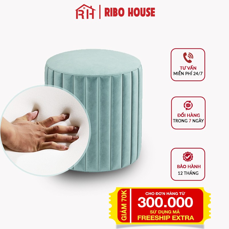 Ghế đôn RIBO HOUSE vải nhung nỉ, ghế trang điểm trang trí decor phòng ngủ tiệm nails spa homestay salong tóc RIBO59