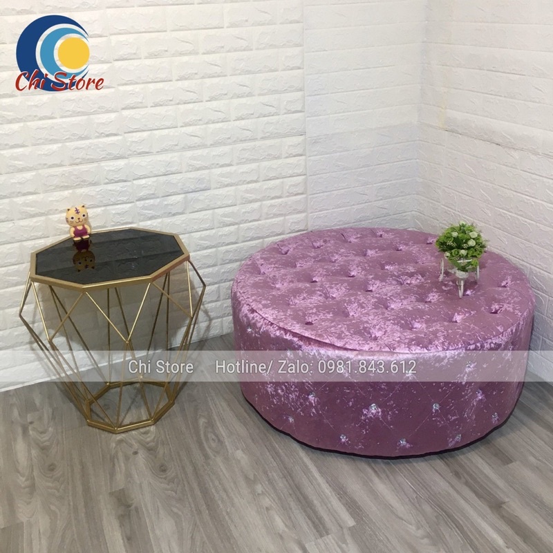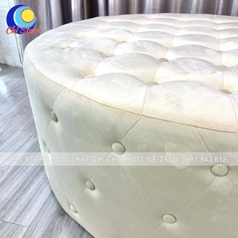 Giới thiệu Ghế Đôn Sofa Tròn Đính Khuy Đường Kính 1M, Đôn Sofa Ngồi Chờ Tại Shop Sang Chảnh