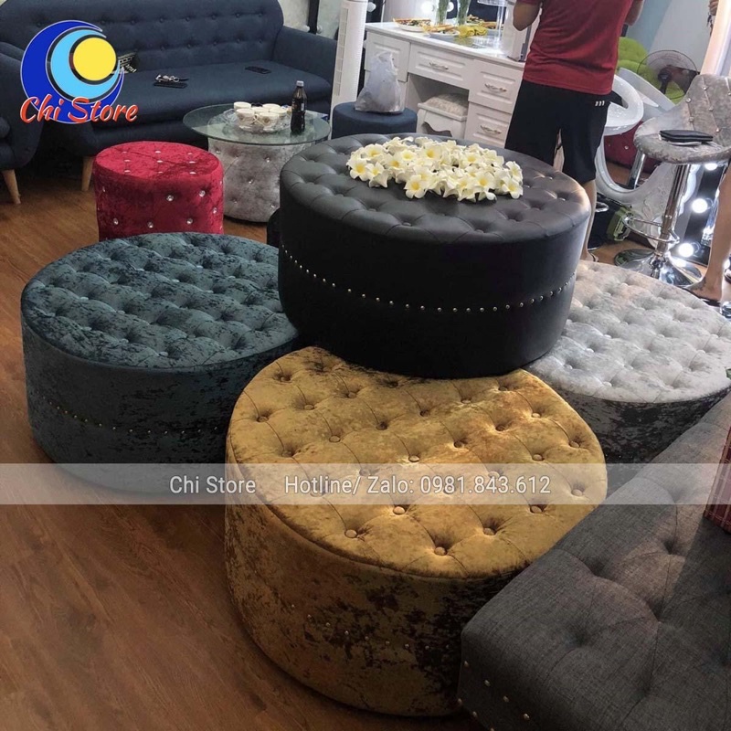 🎯Ghế sofa đôn hình trụ sử dụng loại mút tốt có độ đàn hồi cao, không bị xẹp lún. Xung quanh được đính khuy tạo điểm nhấn và sang trọng nha cả nhà.