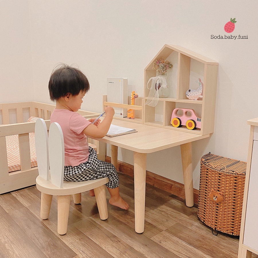 Ghế đơn tai thỏ cao cho bé nhỏ tập ngồi 30cm màu trắng gỗ mã 001