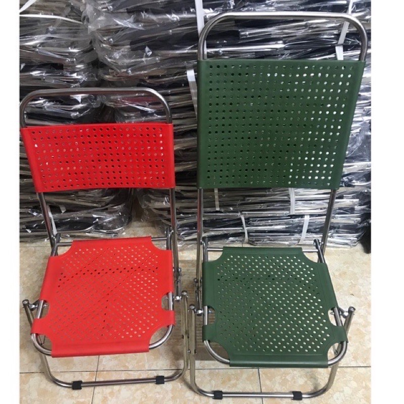 Ghế xếp có 2 loại : lưng cao ( chiều cao ghế 85 cm ) và lưng thấp( chiều cao ghế 70 cm )- Kích thước khi xếp lại : ghế lưng cao 42x80, ghế lưng thấp 42x60