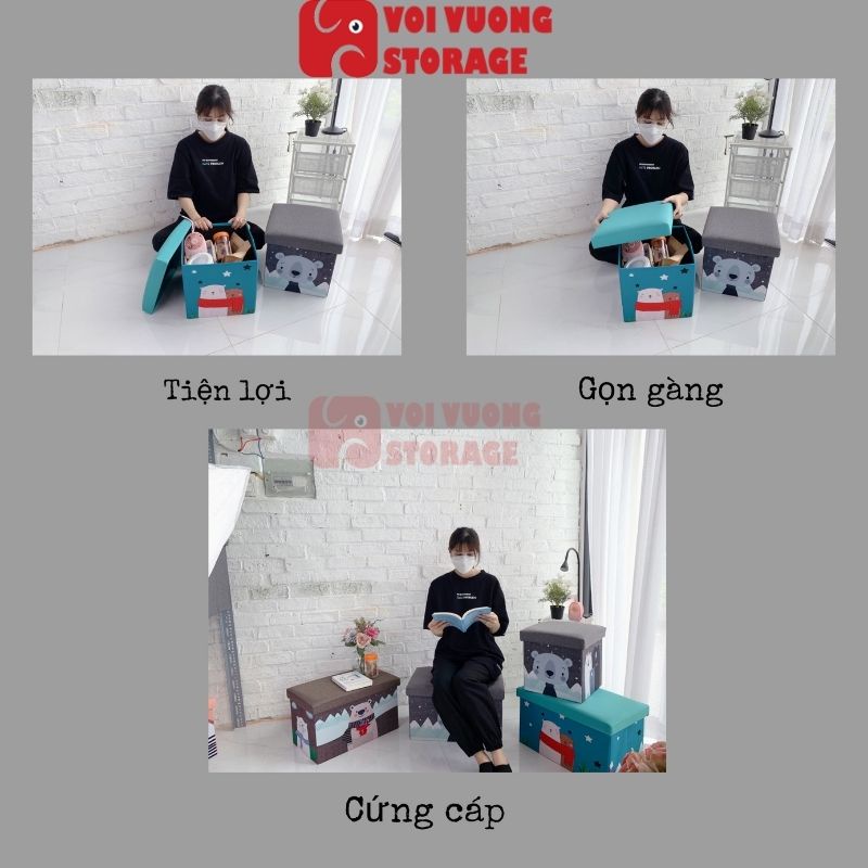 Nhà cửa & Đời sống > Nội thất > Ghế, ghế dài, ghế đẩu || Ghế đựng đồ đa năng đáng yêu cứng cáp thương hiệu VOI VUÔNGCòn hàng