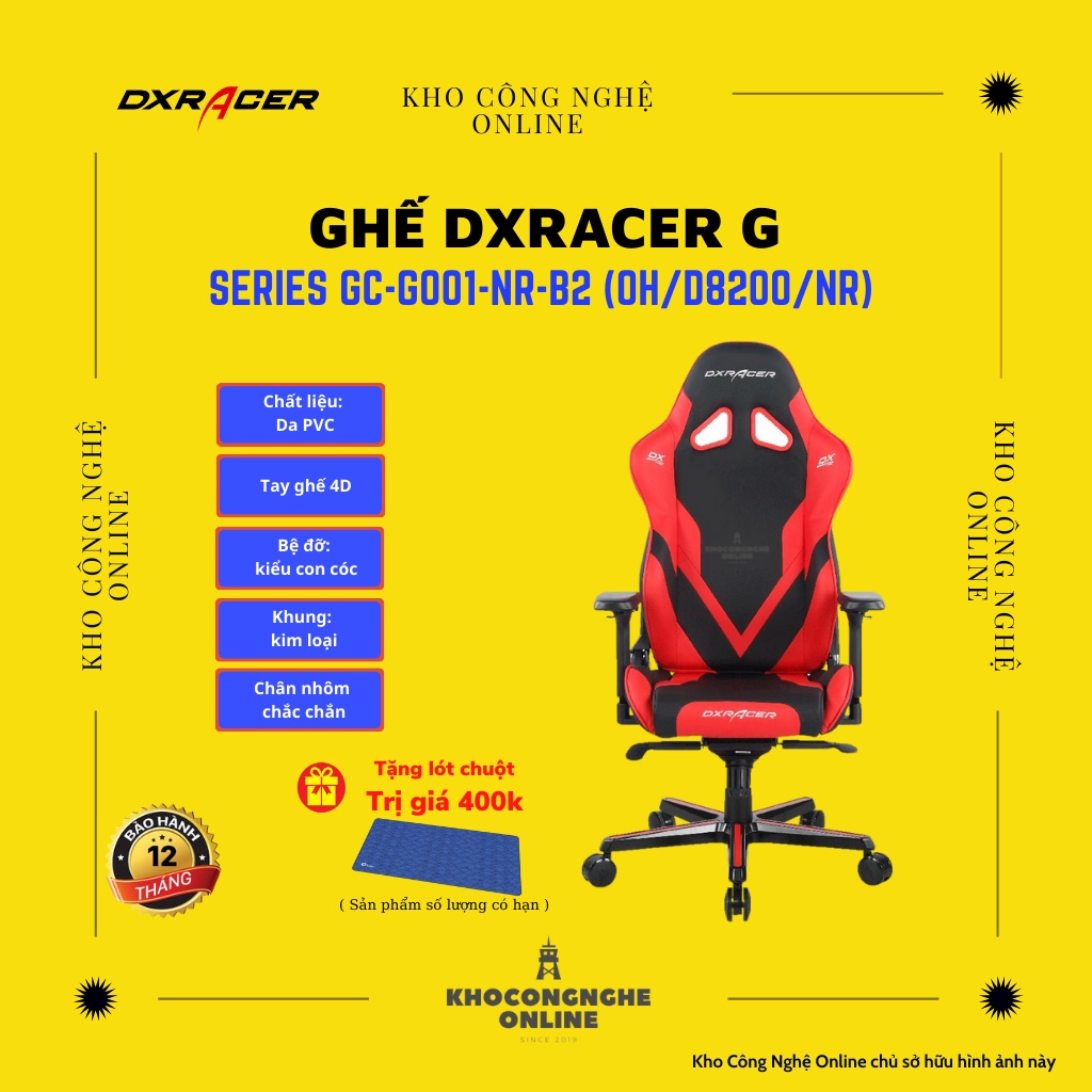 Nhà cửa & Đời sống > Nội thất > Ghế, ghế dài, ghế đẩu || Ghế DXRacer G Series GC-G001-NR-B2 (OH/D8200/NR)Còn hàng