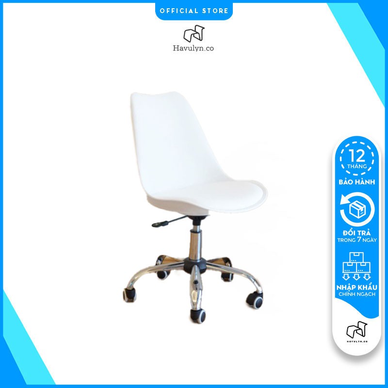 Ghế Eames Chân Xoay Có Bánh Xe Di Chuyển, Ghế Xoay Văn Phòng 360 Độ Inox Nệm Ngồi Bọc Simili Tựa Lưng