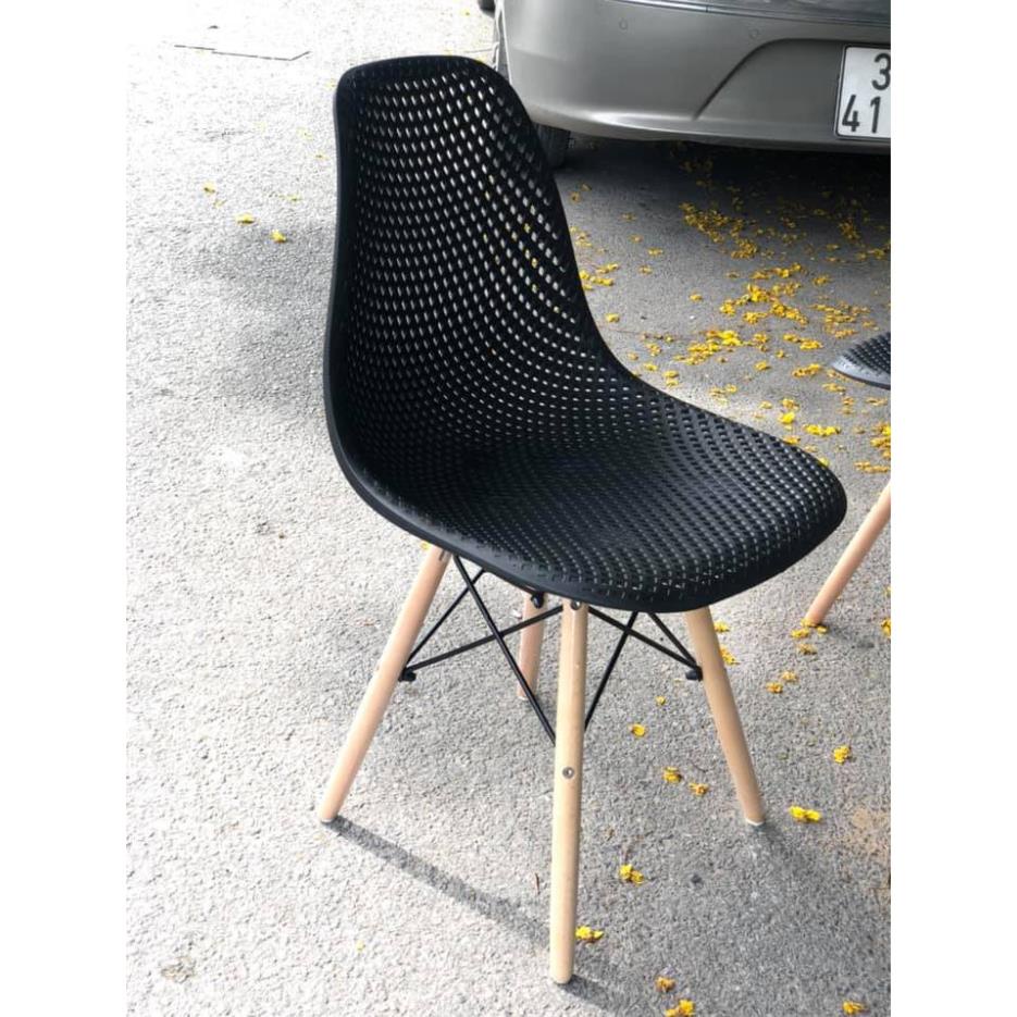 Ghế Eames ☀️FREESHIP ☀️ Chân Gỗ, Lưng Ghế Dạng Lưới, Ghế Uống Trà...Chất Liệu ABS Cao Cấp