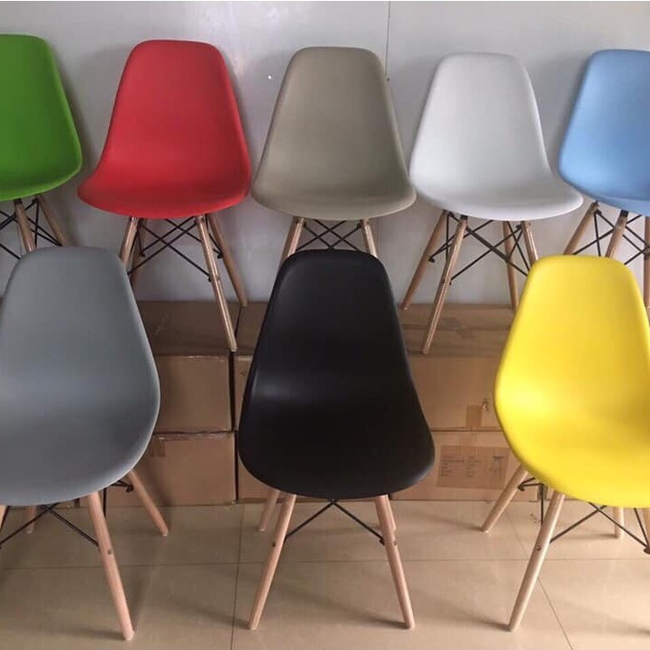 - Ghế nhựa chân gỗ (ghế eames) nhập khẩu.- Kiểu dáng đơn giản, trang nhã, tinh tế thường dùng trong gia đình, văn phòng công ty, quán cà phê, phòng ăn