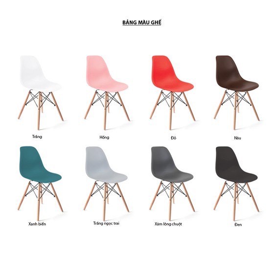 Ghế Eames được thiết kế bởi Charles & Ray Eames với chân bằng gỗ, khung thép chắc chắn, phần ghế ngồi được làm từ nhựa PP nguyên sinh dẻo dai bền với thời gian.