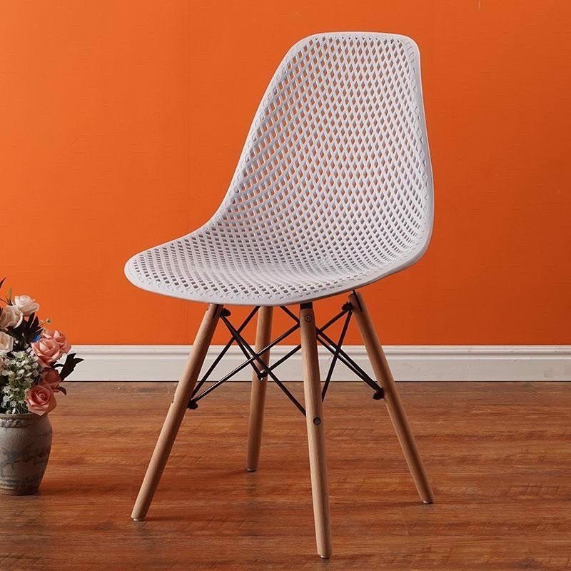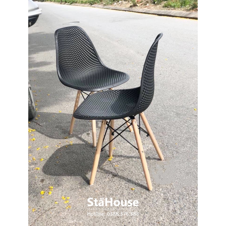 Ghế Không Tay Eames Lưng Đan Lưới Nhựa Chân GỗChất liệu: Mặt ghế nhựa PP lưới, chân gỗ giăng sắt