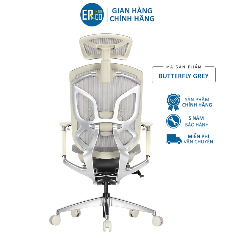 Ghế Công Thái Học Ergonomic Butterfly - Xám, thiết kế màu đơn giản, chân hợp kim nhôm siêu bền, thoải mái, phù hợp dân văn phòng, cải thiện tình trạng đau lưng, lệch tư thế, đau mỏi vai và cổ khi làm việc với cường độ lớn và thời gian dài.THÔNG TIN SẢN PHẨM: