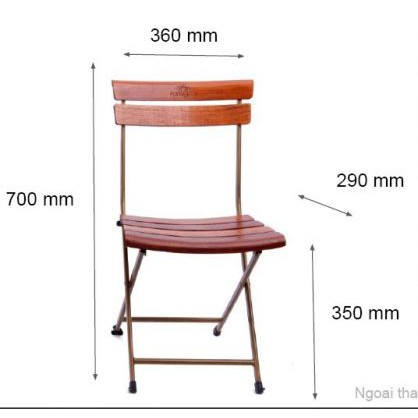 Ghế fanxipan mini làm từ gỗ muồng nhập khẩu, xử lý chống mối mọt, chân sắt sơn tỉnh điện, dưới chân có nút nhựa tránh khi kéo sẽ gây tiếng ồn. Mặc dù chân sắt nhỏ nhưng rất bền. mặt ghế ngồi hình thang, 33x36cm. mặt sâu ghế là 24,5cm. Từ đất lên mặt ghế ngồi là 34-35cm. Từ đất lên thành lưng lựa là 68cm. Đi kèm theo ghế chúng tôi có bàn mini, mặt bàn 45x60cm, cao 57cm. Bàn ghế đều xếp được khi không sử dụng, giúp tiết kiệm không gian.- Về nội thất gỗ chúng tôi còn chuyên cung cấp kệ sách, kệ dép, kệ vi ba, kệ để bình nước, kệ trang trí...